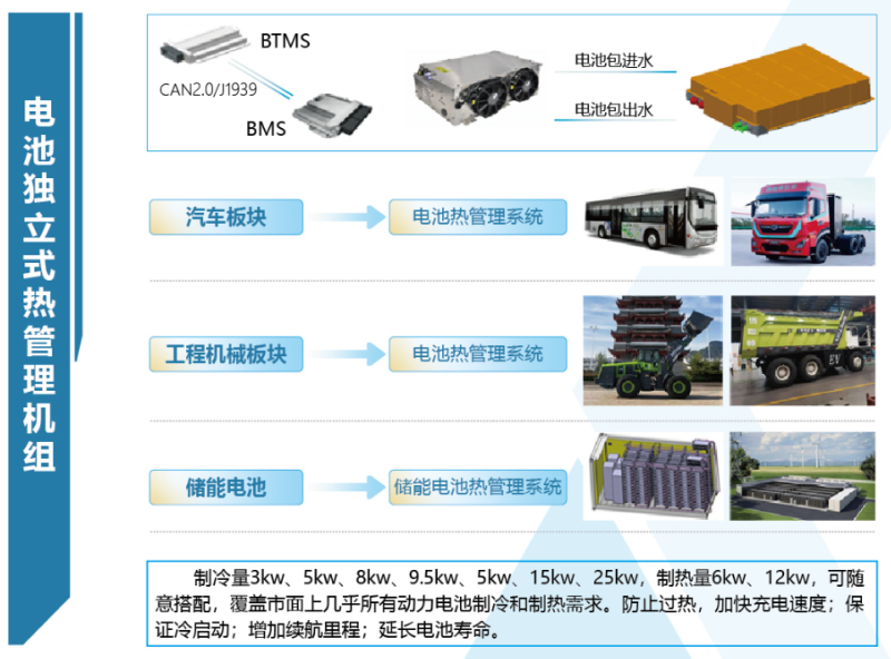 埃泰斯新能源獨(dú)立電池?zé)峁芾鞡TMS業(yè)務(wù)部門從2016年起就開始研發(fā)、銷售主要應(yīng)用于儲(chǔ)能電站及卡車工程機(jī)械等需要獨(dú)立電池?zé)峁芾韴鼍暗碾姵匾豪錂C(jī)組,是行業(yè)內(nèi)電池液冷系統(tǒng)的開創(chuàng)者。