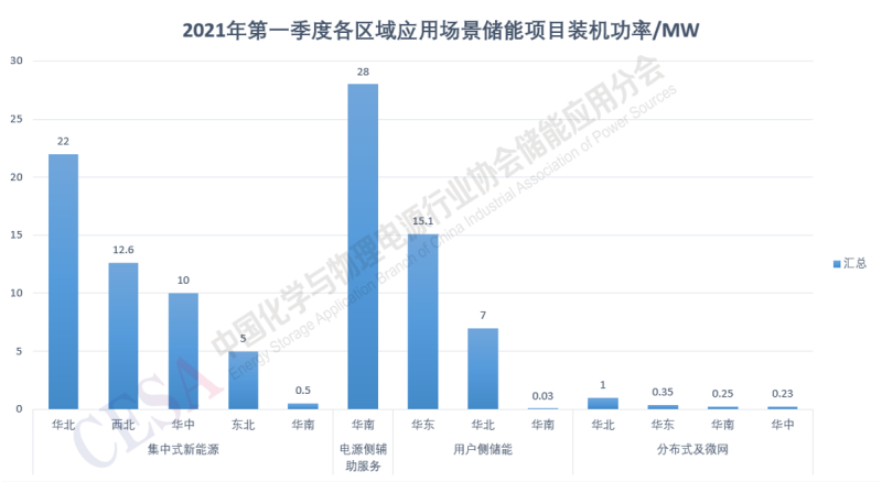 而2021年第一季度集中式新能源項(xiàng)目主要集中在華北、西北和華中地區(qū);用戶側(cè)儲(chǔ)能項(xiàng)目集中在華北和東北地區(qū)。