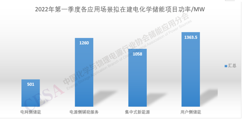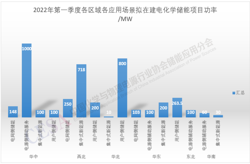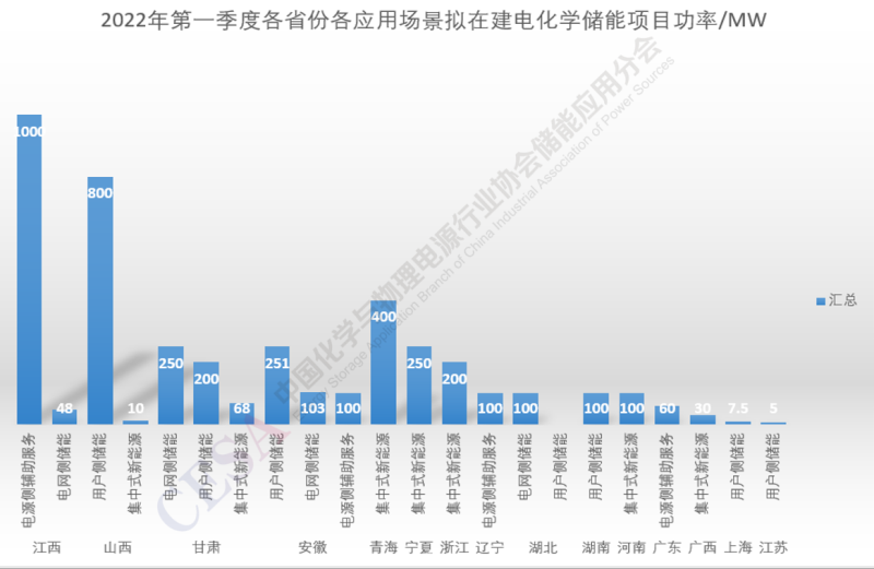 進(jìn)一步而言,2022年第一季度電化學(xué)儲(chǔ)能項(xiàng)目裝機(jī)情況如下: