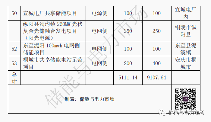 《規(guī)劃》對(duì)各區(qū)域的建設(shè)規(guī)模以及接入站點(diǎn)都進(jìn)行了規(guī)劃、建議、推薦,并提供了53個(gè)新型儲(chǔ)能項(xiàng)目列表,共計(jì)總規(guī)模5.1GW/9.1GWh。