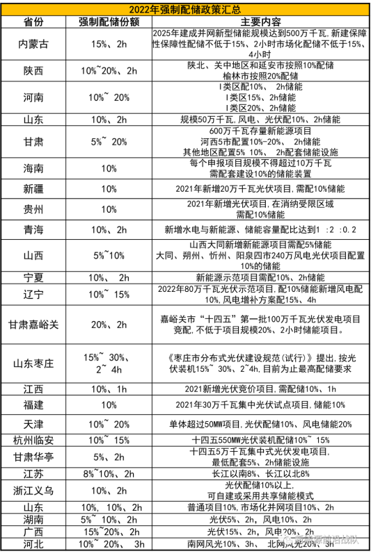 國內(nèi)表前市場:強制配儲地區(qū)不斷增加,為發(fā)電側裝機量帶來政策保障