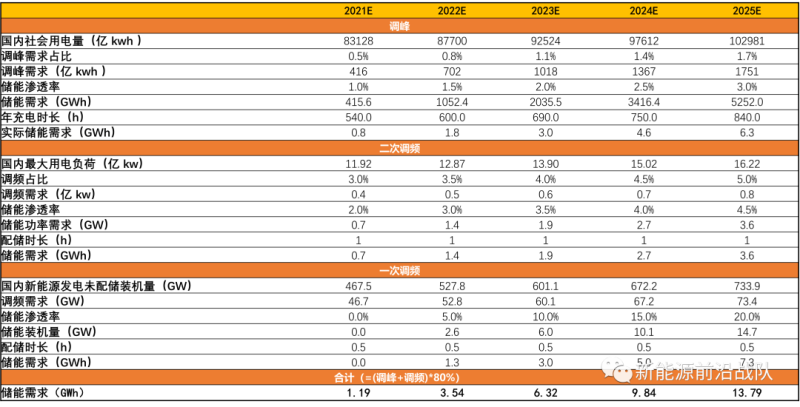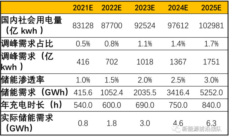 調(diào)峰需求測算:預計25年需求達6.3GWh,21-25年CAGR+69%