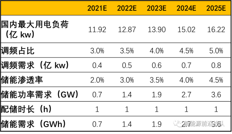 測算結果:預計21-25年國內(nèi)一次調(diào)頻場景對儲能需求將為0.0/1.3/3.0/5.0/7.3GWh,有望成為電網(wǎng)側儲能裝機量最大增量。