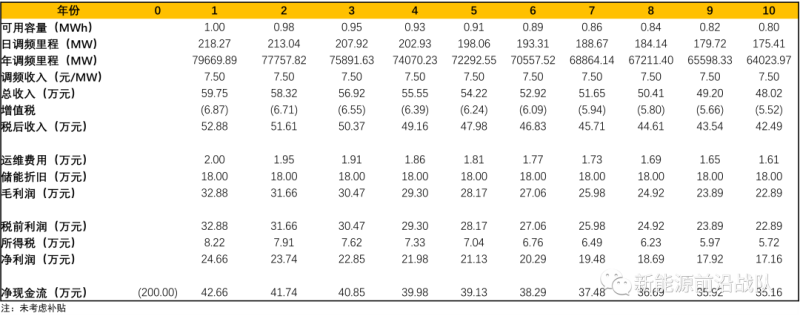 調(diào)頻經(jīng)濟性:以7.5元/MW補償標準計算,全生命周期IRR=14.91%