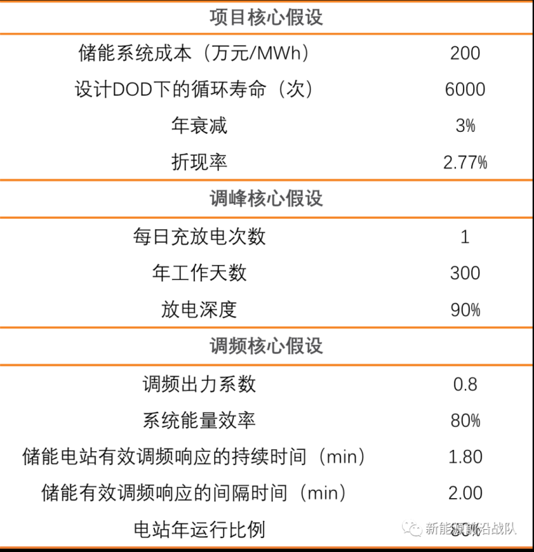 表:獨立儲能同時參與調(diào)峰+調(diào)頻的核心假設
