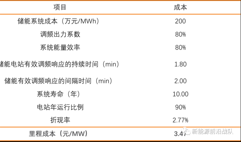 表:獨立儲能參與調(diào)頻的度電成本測算