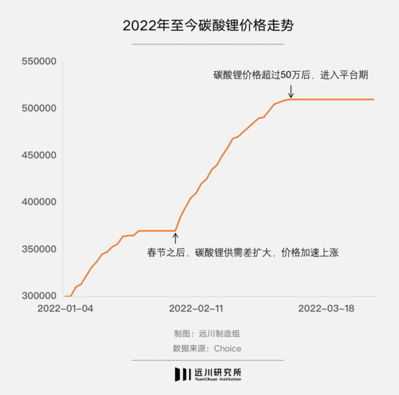 直到2021年12月份,碳酸鋰的價(jià)格還只有每噸25萬(wàn)左右,但不到三個(gè)月時(shí)間,就翻了一番至每噸50萬(wàn)元,這種現(xiàn)象和碳酸鋰的季節(jié)性特點(diǎn)以及正極材料廠的搶購(gòu)有直接關(guān)系。