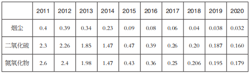 表10 2011~2020年單位火電發(fā)電量的排放量(單位:克/千瓦時)