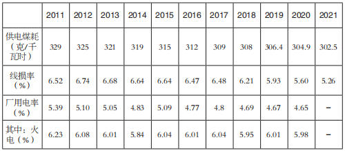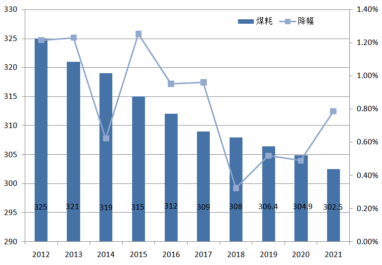 據(jù)國家能源局數(shù)據(jù),2021年全國供電標準煤耗302.5克/千瓦時,同比再降2.4克/千瓦時,較2011年下降了26.5克/千瓦時。