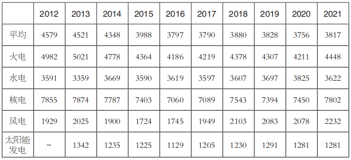 表4 2012~2021年發(fā)電設備利用小時數(shù)(單位:小時)