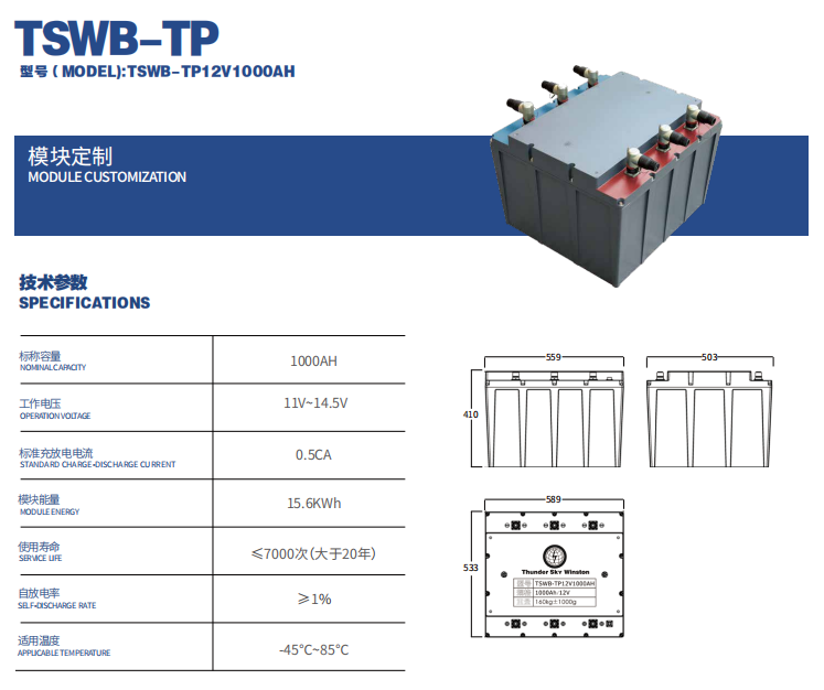 TP型模塊化系列產(chǎn)品可根據(jù)用戶需求設(shè)計(jì)訂制、使用儲(chǔ)能型LYP系列水性單體大容量電芯,實(shí)現(xiàn)大容量高電壓12V/24V/48/96V-1500V模組儲(chǔ)能系統(tǒng)應(yīng)急解決方案。