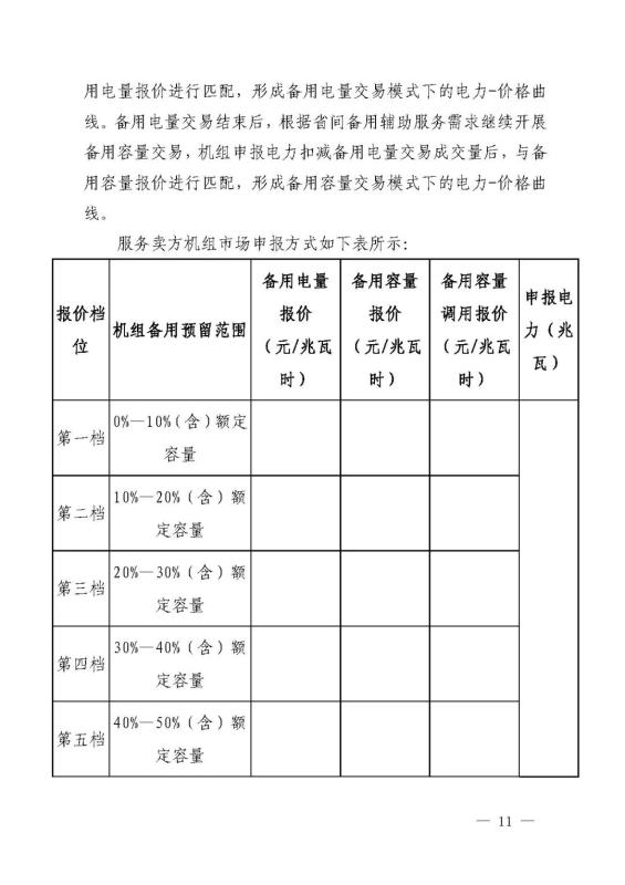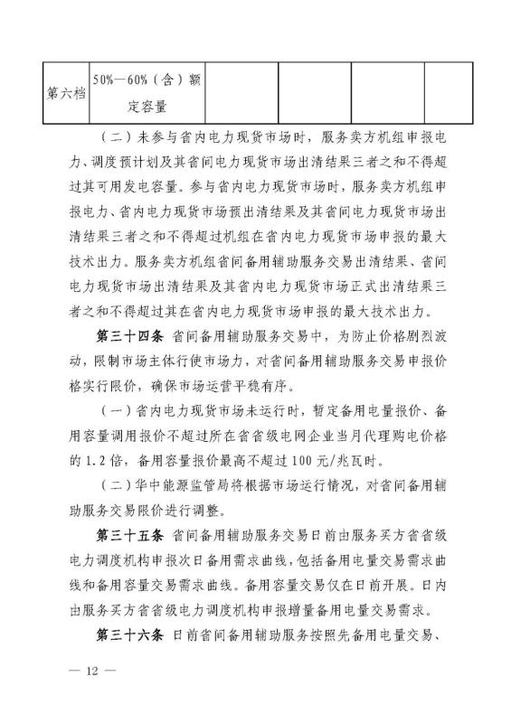 省內電力現貨市場未運行時,暫定備用電量報價、備用容量調用報價不超過所在省省級電網企業(yè)當月代理購電價格的1.2倍,備用容量報價最高不超過100元/兆瓦時。