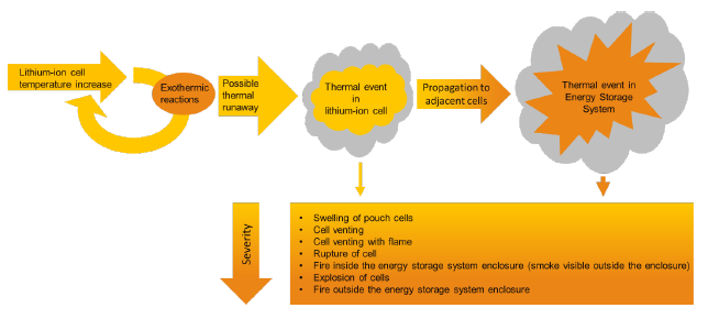 圖3鋰離子電池中導(dǎo)致電池儲能系統(tǒng)起火或爆炸的熱失控事件