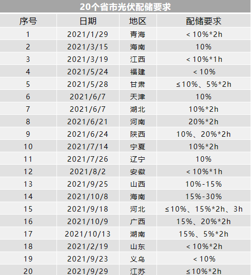 2022年1月,山東省棗莊市能源局、棗莊市行政審批局和棗莊供電公司聯(lián)合下發(fā)的《棗莊市分布式光伏開發(fā)建設(shè)規(guī)范》明確提出,新建分布式光伏要“按照裝機(jī)容量的15%-30%、時(shí)長2-4小時(shí)配置儲(chǔ)能設(shè)施,或者租賃同等容量的共享儲(chǔ)能設(shè)施”。3月16日,河北省能源局也發(fā)布了《屋頂分布式光伏建設(shè)指導(dǎo)規(guī)范(試行)》,要求配套儲(chǔ)能,可選擇自建、共建或租賃等方式靈活開展配套儲(chǔ)能建設(shè)。屋頂分布式光伏項(xiàng)目逐步按照“光伏+儲(chǔ)能”方式開發(fā)建設(shè),以確保電網(wǎng)安全運(yùn)行和用戶供用電安全為原則,統(tǒng)籌考慮負(fù)荷特性和電能質(zhì)量要求進(jìn)行儲(chǔ)能配置。