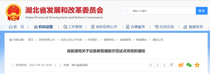 中國(guó)儲(chǔ)能網(wǎng)訊:4月28日,湖北省能源局發(fā)布征集新型儲(chǔ)能示范試點(diǎn)項(xiàng)目的通知。