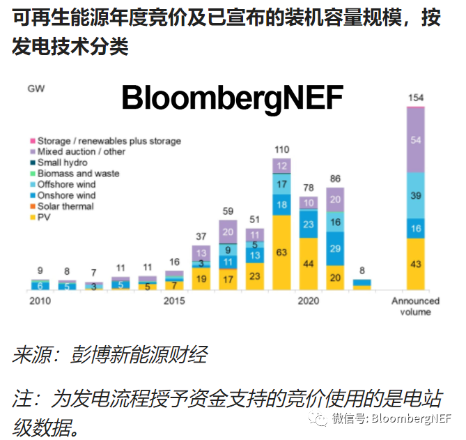 全球計劃開展的可再生能源競價所涉及裝機容量