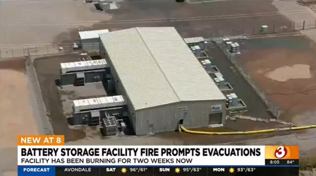 中國(guó)儲(chǔ)能網(wǎng)訊:美國(guó)當(dāng)?shù)貢r(shí)間4月30日新聞稱,Chandler電池儲(chǔ)能項(xiàng)目已經(jīng)燃燒了兩個(gè)星期。在消防隊(duì)員監(jiān)控情況的同時(shí),四分之一英里內(nèi)的企業(yè)被敦促撤離。這一命令在晚上7點(diǎn)左右結(jié)束。