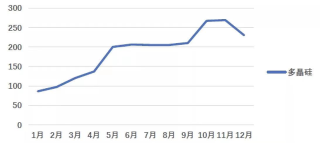 相比中國光伏行業(yè)協(xié)會(huì)數(shù)據(jù),PV_Infolink數(shù)據(jù)更為直觀:光伏多晶硅致密料價(jià)格從2021年1月6日的84元/公斤,增長至12月29日的230元/公斤,區(qū)間內(nèi)最高價(jià)格到了269元/公斤。