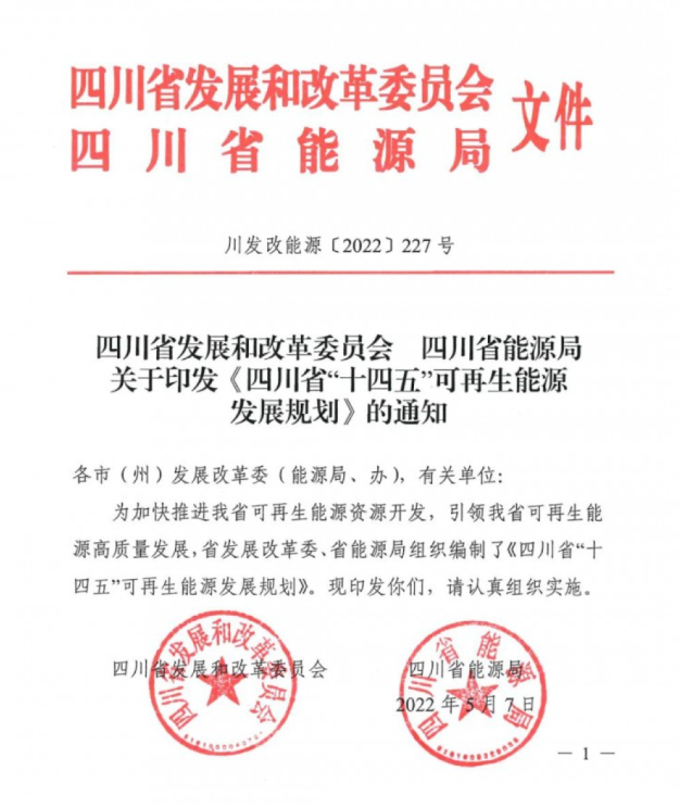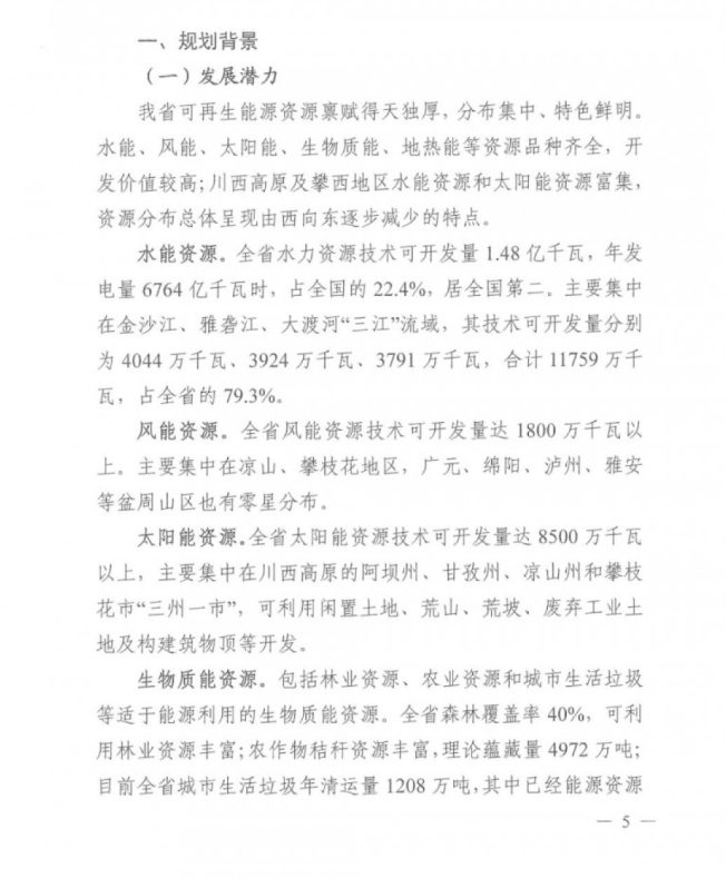 中國(guó)儲(chǔ)能網(wǎng)訊:5月7日,四川省發(fā)改委、能源局印發(fā)了關(guān)于《四川省“十四五”可再生能源發(fā)展規(guī)劃》的通知(以下簡(jiǎn)稱“規(guī)劃”)。
