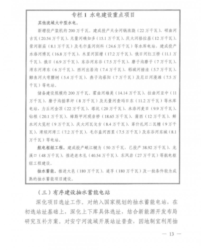 在儲(chǔ)能方面,規(guī)劃強(qiáng)調(diào)推動(dòng)水電與風(fēng)光發(fā)電協(xié)同發(fā)展,推進(jìn)水風(fēng)光一體化可再生能源綜合開(kāi)發(fā)基地建設(shè),在負(fù)荷中心和新能源基地重點(diǎn)布局抽水蓄能電站,加快新型儲(chǔ)能示范推廣。另外,鼓勵(lì)建設(shè)光伏儲(chǔ)能試點(diǎn)項(xiàng)目,對(duì)先進(jìn)設(shè)備、產(chǎn)品性能、技術(shù)方案等開(kāi)展實(shí)證對(duì)比、實(shí)驗(yàn)檢測(cè)等。