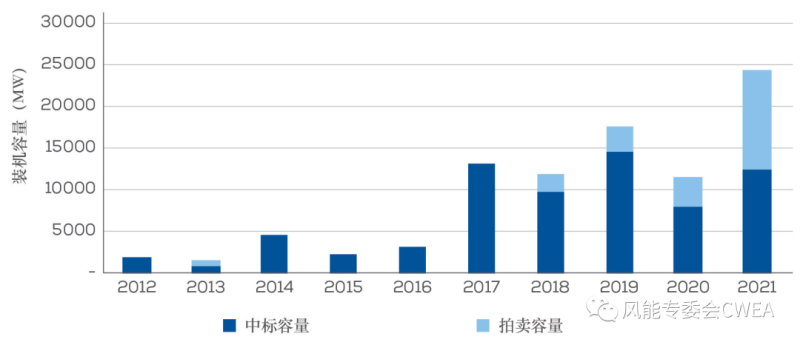 圖8 2012—2021年歐洲風電拍賣與投標情況