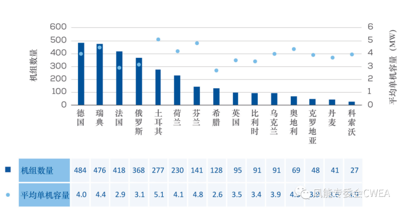 圖6 2021年歐洲新安裝陸上風電機組的數量與平均單機容量