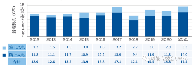 圖2 2012—2021年歐洲風電新增裝機走勢