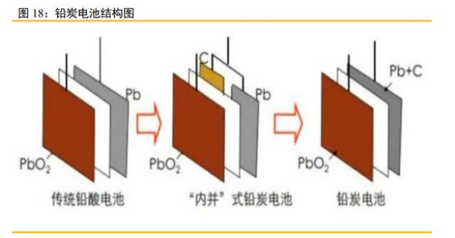 鉛碳電池是一種電容型鉛酸電池,是從傳統(tǒng)的鉛酸電池演進(jìn)出來的技術(shù)。普通鉛酸 電池的正極活性材料是氧化鉛(PbO2),負(fù)極活性材料是鉛(Pb),若把負(fù)極活性材料Pb全部 換成活性炭,則普通鉛酸電池變成混合電容器;若把活性炭混合到負(fù)極活性材料Pb中, 則普通鉛酸電池變成鉛炭電池。