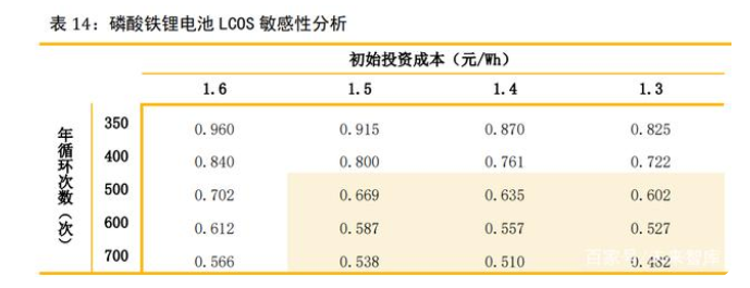 3.3 磷酸鐵鋰電池儲能成本分析測算