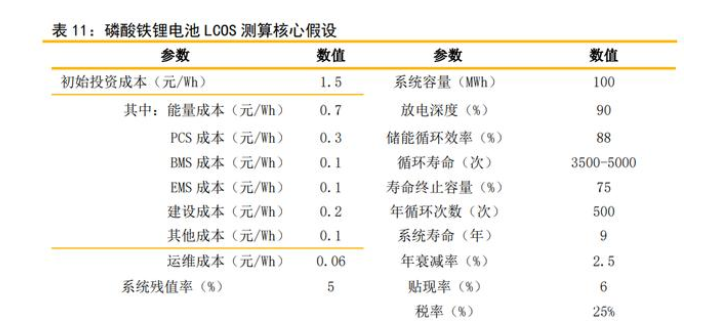 鋰離子電池全壽命儲能度電成本(LCOS)測算核心假設(shè):