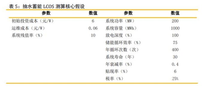 抽水蓄能全壽命儲能度電成本(LCOS)測算核心假設(shè):