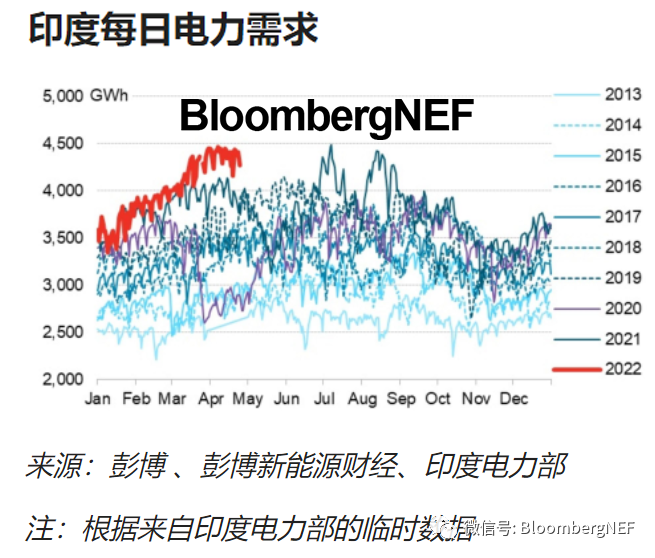 印度疫情后的經(jīng)濟(jì)復(fù)蘇、工業(yè)活動(dòng)有所增強(qiáng)且入夏以來(lái)的氣溫高于歷史平均水平,這都導(dǎo)致今年的電力需求激增。3月和4月的每日電力需求創(chuàng)歷史新高,空調(diào)負(fù)荷上升使印度3月電力需求同比增長(zhǎng)5.9%。