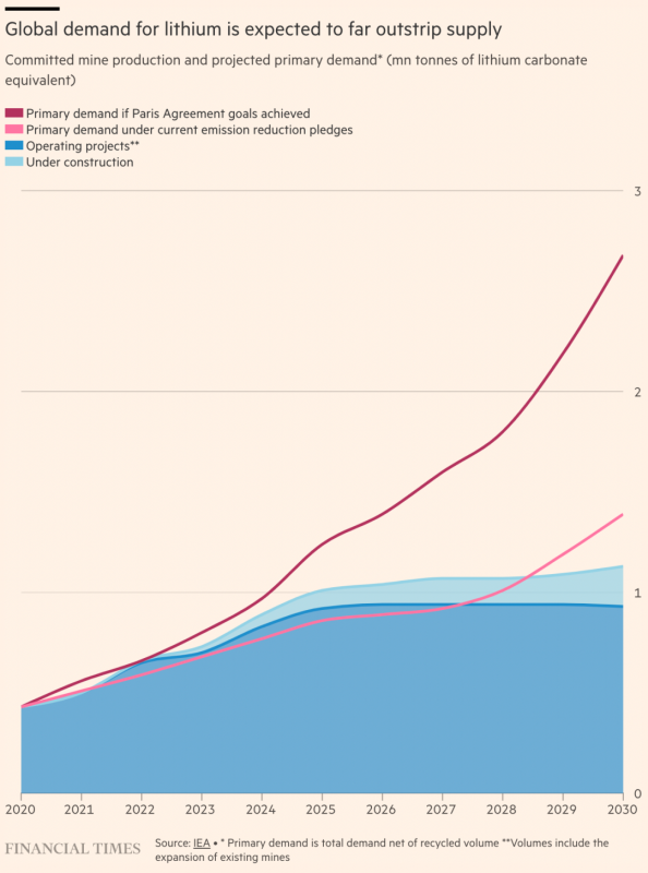 國(guó)際能源署表示,全球80%以上的鋰礦產(chǎn)自澳大利亞、智利和中國(guó),僅中國(guó)就控制著全球一半以上的加工和精煉。美國(guó)在內(nèi)華達(dá)州有一座露天鋰礦,其他大部分供應(yīng)來(lái)自阿根廷和智利。