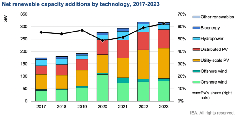 根據(jù)目前政策走向,可再生能源的全球增長2023年將失速,因?yàn)樘柲馨l(fā)電的持續(xù)增長被水電下降40%和風(fēng)力發(fā)電增加量幾乎沒有變化所抵消。