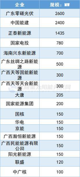 整體來看,廣西地區(qū)民營光伏企業(yè)參與程度更高,廣東零碳光伏備案項目為2.6GW,居首位,此外,民營光伏企業(yè)正泰新能源備案項目超1.4GW,海南興東、廣東絲綢之路、廣西天等國能新能源、廣西天等天合新能源、陽光新能源等光伏備案規(guī)模均在百兆瓦。