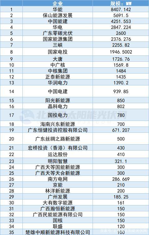 華潤電力主要以地面項目為主,備案規(guī)模約1GW,分布式項目備案約10MW;中核集團備案項目為700MW農光互補項目;此外,國家能源集團備案項目超500MW,華電、大唐備案項目超300MW。