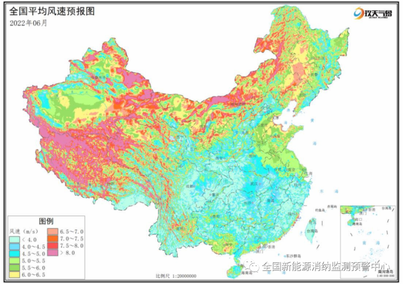 附圖5 全國2022年6月平均風(fēng)速分布預(yù)報圖