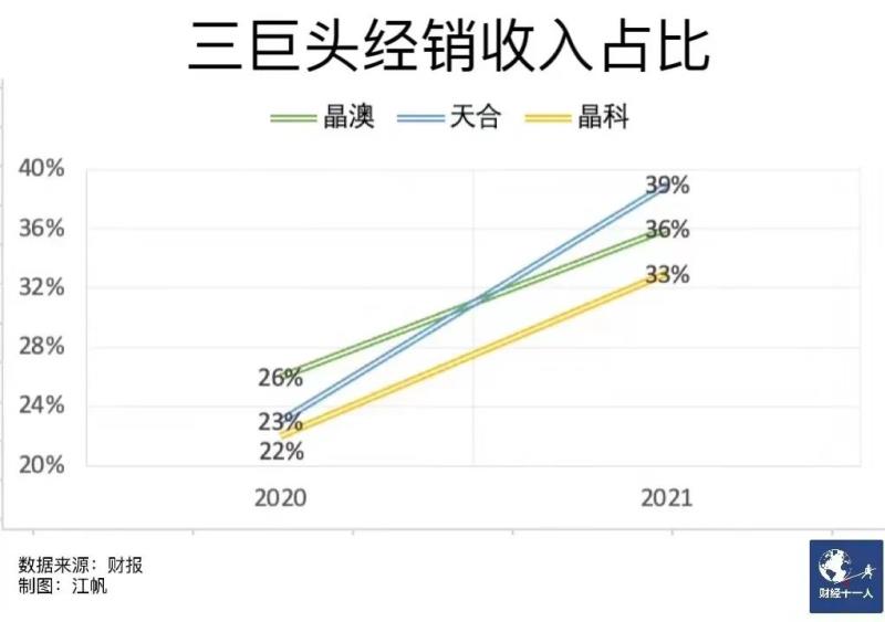 2022年以來(lái),重點(diǎn)發(fā)力分布式、開(kāi)拓經(jīng)銷業(yè)務(wù)已成為組件巨頭共識(shí)。4月晶科科技推出家庭戶用光伏系統(tǒng)品牌“晶能寶”;隆基、晶澳宣布戶用“光伏貸”業(yè)務(wù)相關(guān)用戶提供資金擔(dān)保。