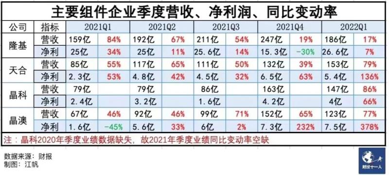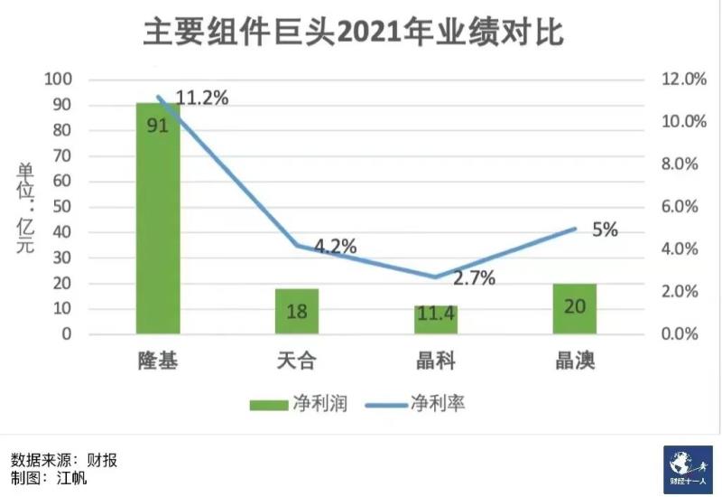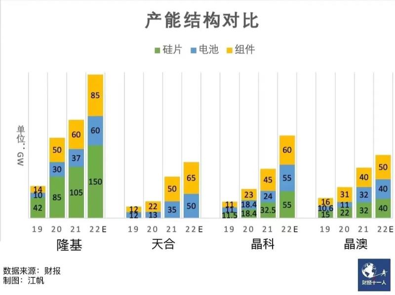 天合2020年中回A,是唯一一個(gè)沒(méi)有硅片產(chǎn)能的組件巨頭,只有電池、組件兩端產(chǎn)能。這也是天合盈利能力不如晶澳的主要原因。一位接近天合的知情人士對(duì)《財(cái)經(jīng)十一人》表示,天合是輕資產(chǎn)模式的專業(yè)化企業(yè),過(guò)去幾年未大規(guī)模投資硅片,整體利潤(rùn)表現(xiàn)確實(shí)低于一體化企業(yè),但高于同模式企業(yè)。2022年,硅料供需整體依舊偏緊,天合還將承壓一年。
