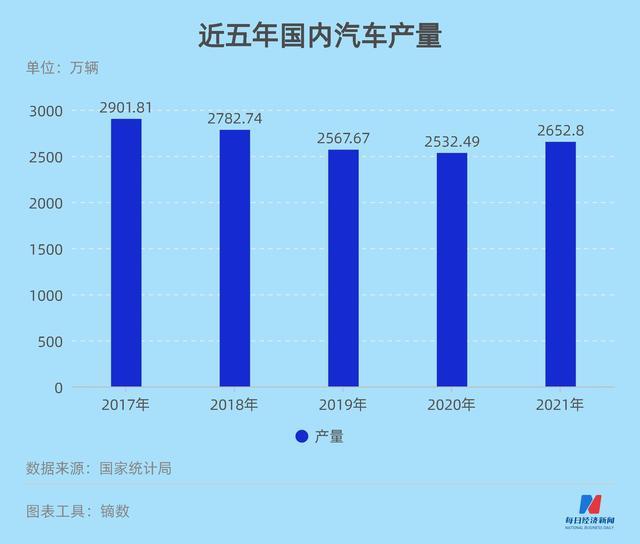 另一方面,即使排除疫情的影響,近幾年國內(nèi)新車產(chǎn)量增速也已經(jīng)放緩。據(jù)國家統(tǒng)計(jì)局?jǐn)?shù)據(jù),國內(nèi)汽車產(chǎn)量在2017年到達(dá)頂峰(2901.81萬輛),隨后開始下滑,在2021年有所反彈,約2652.80萬輛。