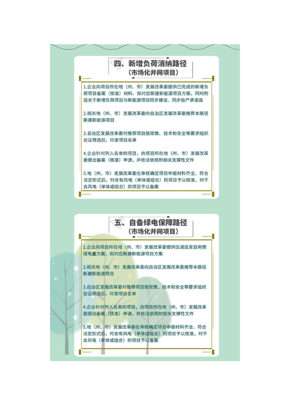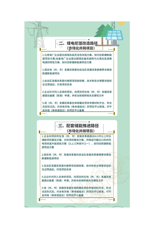 二是第(一)條路徑中項(xiàng)目為保障性并網(wǎng)項(xiàng)目,光伏(向大電網(wǎng)送電)項(xiàng)目由自治區(qū)發(fā)展改革委備案,風(fēng)電項(xiàng)目由地(州、市)發(fā)展改革委核準(zhǔn);第(二)(三)(四)(五)(六)條路徑中項(xiàng)目,為通過源網(wǎng)荷儲(chǔ)一體化、多能互補(bǔ)等方式建設(shè)的市場(chǎng)化并網(wǎng)項(xiàng)目。根據(jù)《國(guó)家發(fā)展改革委 國(guó)家能源局關(guān)于完善能源綠色低碳轉(zhuǎn)型體制機(jī)制和政策措施的意見》(發(fā)改能源〔2022〕206號(hào))中“深化能源領(lǐng)域‘放管服’改革,優(yōu)化清潔低碳能源項(xiàng)目核準(zhǔn)和備案流程”精神,自治區(qū)發(fā)展改革委經(jīng)組織國(guó)家能源局新疆監(jiān)管辦、自治區(qū)自然資源廳、生態(tài)環(huán)保廳、國(guó)網(wǎng)新疆電力有限公司等相關(guān)部門和單位,按政策、技術(shù)和安全等要求論證,將符合要求的項(xiàng)目列入自治區(qū)項(xiàng)目名單后,統(tǒng)一由地(州、市)發(fā)展改革委核準(zhǔn)(備案);第(七)條路徑中項(xiàng)目為市場(chǎng)化并網(wǎng)項(xiàng)目,由各地(州、市)發(fā)展改革委核準(zhǔn)(備案)。