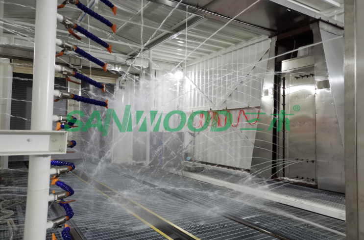 設(shè)備主要由行車(chē)框架,龍門(mén)框架,導(dǎo)軌移動(dòng)、補(bǔ)回水系統(tǒng)、排污系統(tǒng)、噴淋系統(tǒng)、電控系統(tǒng)、水泵系統(tǒng)、工控系統(tǒng)等組成。