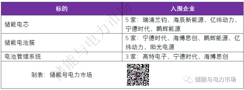 儲(chǔ)能電池簇、電氣電子、PCS入圍供應(yīng)商結(jié)果