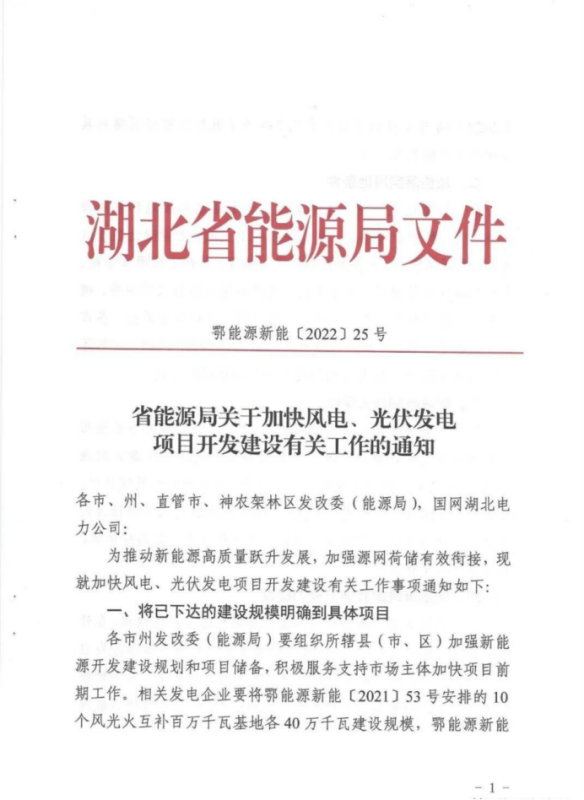 中國(guó)儲(chǔ)能網(wǎng)訊:5月26日,湖北省能源局發(fā)布了《省能源局關(guān)于加快風(fēng)電、光伏發(fā)電項(xiàng)目開(kāi)發(fā)建設(shè)有關(guān)工作》的通知。