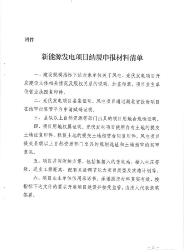 新能源發(fā)電項(xiàng)目納規(guī)申報(bào)材料清單如下: