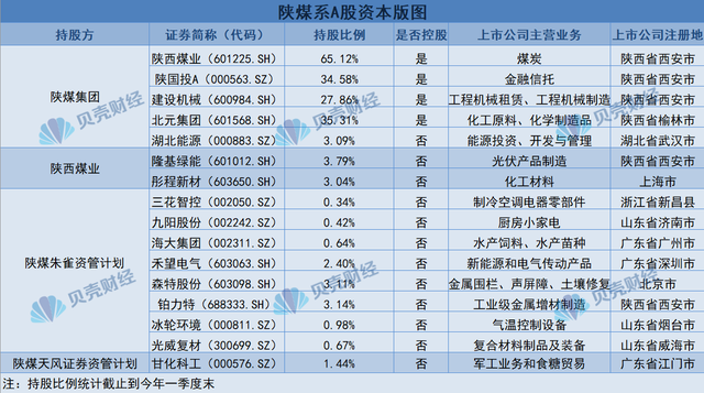 陜煤集團為上交所主板上市公司陜西煤業(yè)控股股東,截至今年一季度末持有陜西煤業(yè)65.12%股權(quán)。
