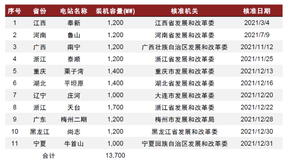 2021年抽水蓄能項(xiàng)目核準(zhǔn)情況
