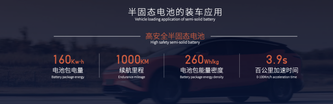 高工鋰電獲悉,搭載半固態(tài)電池的車型,電池包電量達(dá)到160kWh,續(xù)航里程長達(dá)1000km,車輛百公里加速時間僅為3.9s。