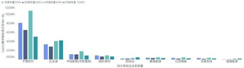 ▲圖1. 1-4月動力電池企業(yè)的供應(yīng)情況