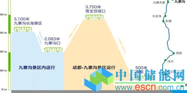 次日,該車(chē)在九寨溝景區(qū)內(nèi)再次成功挑戰(zhàn)了高程差達(dá)到1,015米,往返全程104公里的連續(xù)急彎坡道運(yùn)行的景區(qū)內(nèi)部公交運(yùn)營(yíng)線路,其中景區(qū)內(nèi)最高點(diǎn)長(zhǎng)海與原始森林景點(diǎn)的海拔達(dá)到了近3,100米。